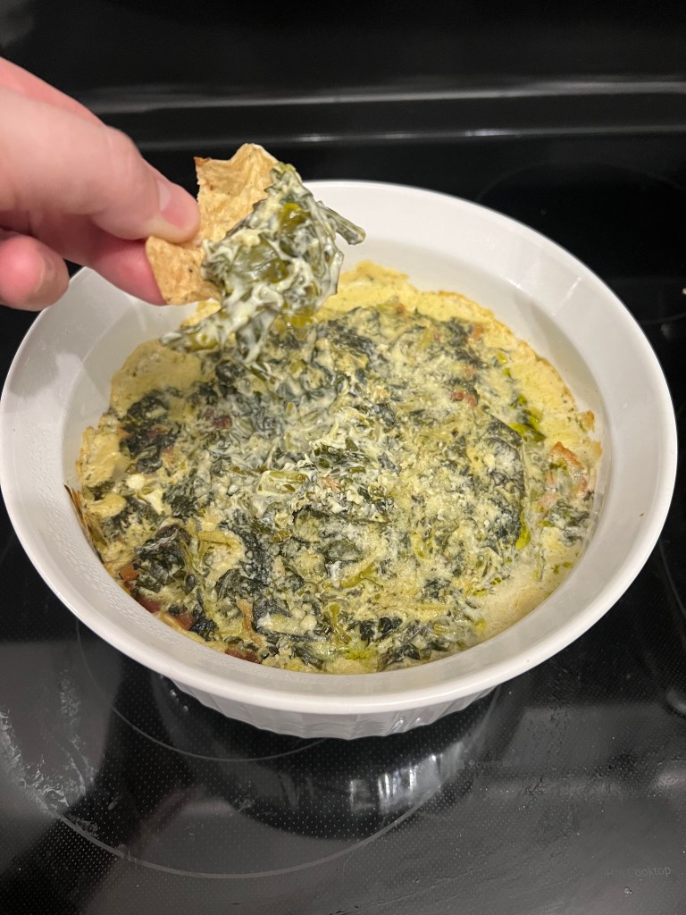 And of course, one of my favorite parts of the Super Bowl is the snacking! I made Slow Cooker Buffalo Chicken Dip from EatingWell and Turnip Green Dip from Southern Bite. We also DoorDashed wings from Buffalo Wild Wings—let’s be honest, I’m not about to pretend I can make wings as good as theirs. For dessert, I whipped up Easy Peach Cobbler Dump Cake from EatingWell. Everything turned out delicious. The Turnip Green Dip was a surprise hit, tasting just like spinach artichoke dip despite not containing either ingredient. I’m thrilled with how it all came together!