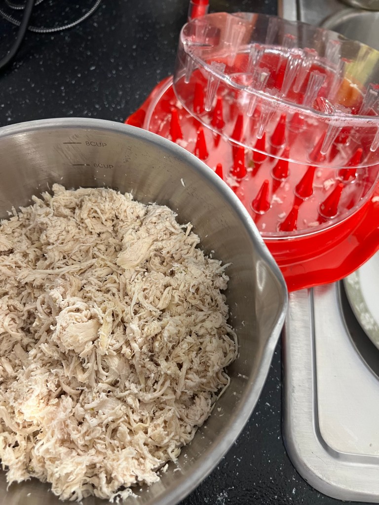 While preparing the buffalo chicken dip, I had the chance to try out a fantastic new kitchen gadget I picked up from Amazon: a chicken shredder! This tool proved to be incredibly effective. I cooked the chicken in the crock pot, which made it exceptionally tender, and the shredder made quick work of pulling it apart. I’m not sure how it would perform with grilled chicken, though, as the exterior tends to be a bit tougher.