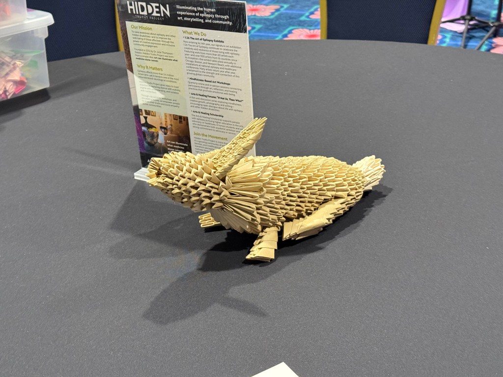 Afterward, we explored the expo hall, which was filled with incredible resources. From seizure alert systems to a comfort stuffed otter wearing an EEG cap, there were so many innovative supports on display. I especially appreciated the resources available for parents and caregivers—it’s easy to forget how much support we need, too.